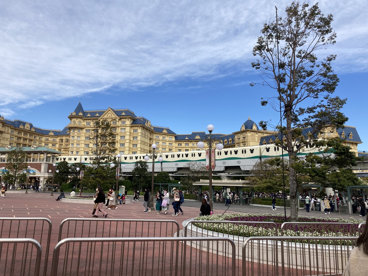 ディズニーリゾートをぐるっとまわるモノレールです。1回260円で乗れますが、ディズニーのホテルに泊まるとモノレールのフリーチケットがもらえます。ありがたい。