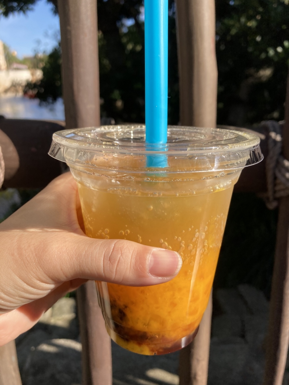 マンゴータピオカドリンクは、飲みやすくて美味しかったです。座るところが少なく、目の前にある机と椅子は、争奪戦がすごかったです。- 旅行時期