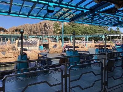 ディズニーシーのアトラクション。コースは二手に分かれていて、どっちに進んでもいいですよと言われ、左手に進みました。左は、人に見られるので、あまり見られたくない人は右の方が良さそう。
