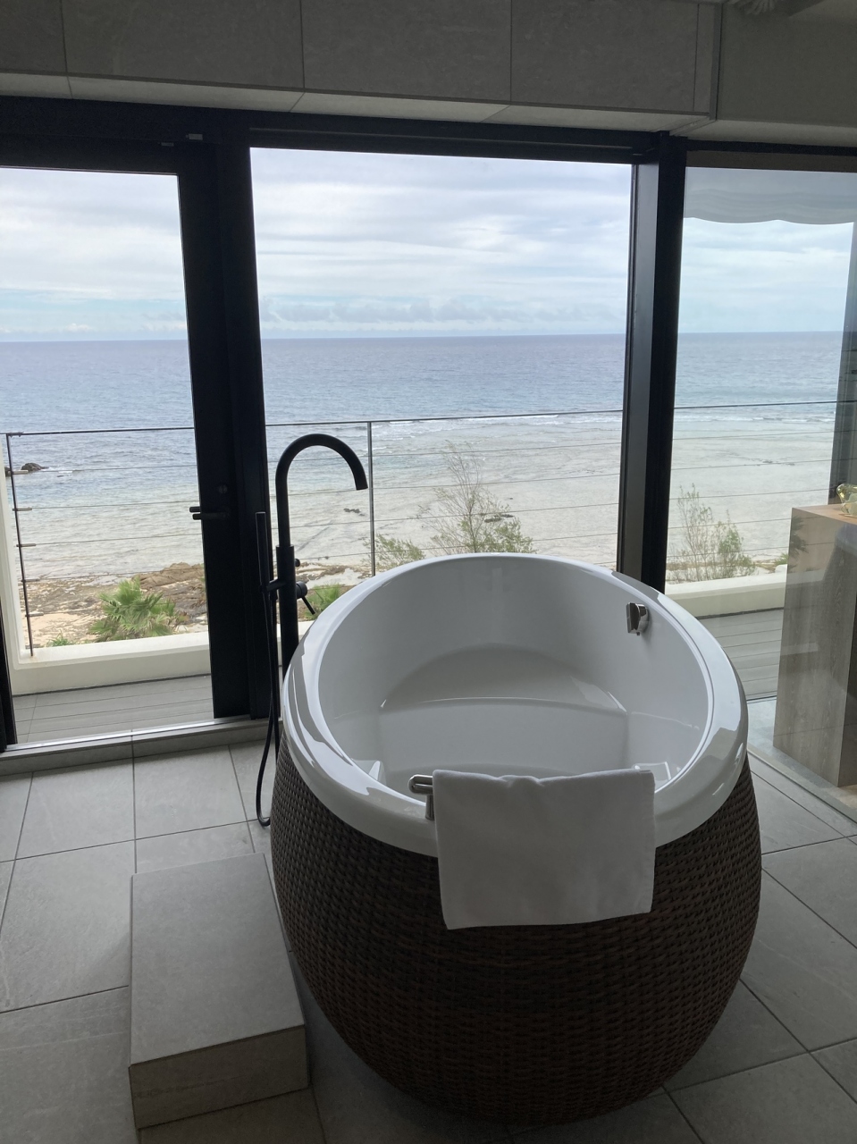 バスタブも可愛く、海を眺めながらのお風呂は最高でした。