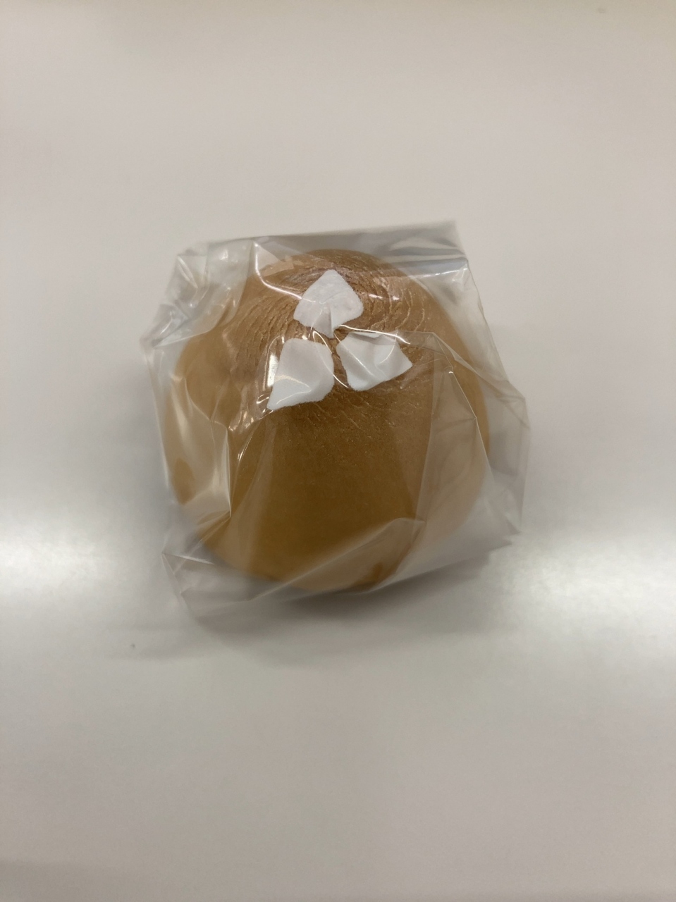 お灸の形をしたおまんじゅうで、中が黄身あんで、皮は柔らかくて、とても美味しかったです。