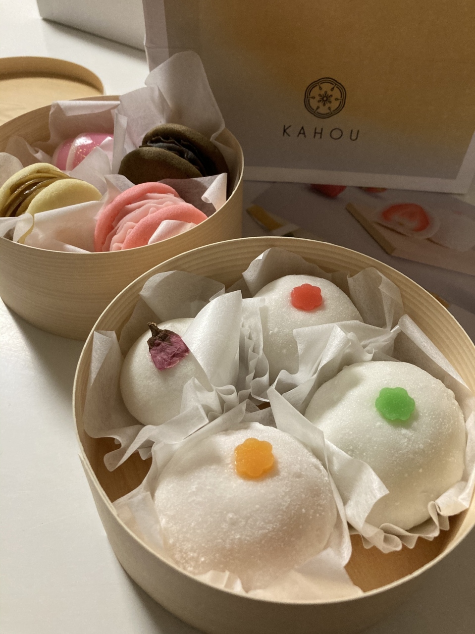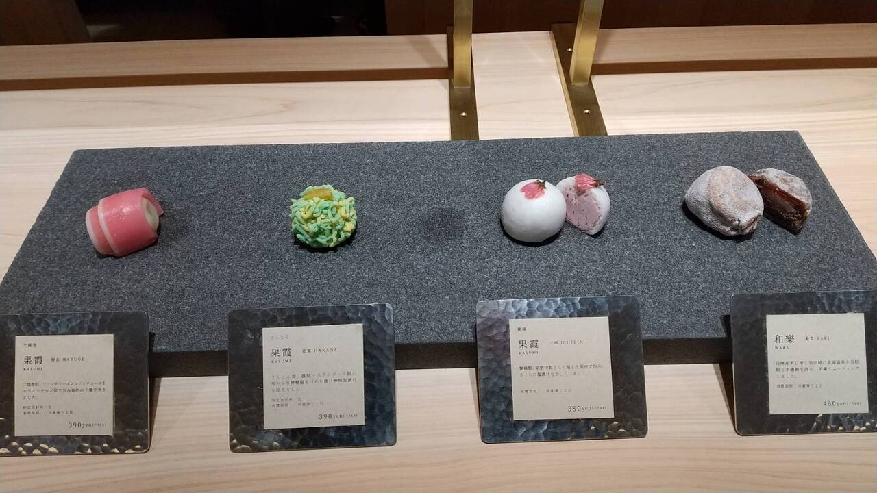 果物大福と創作和菓子を色々購入しました。果物大福は、色んな果物がまるごと入っていて美味しかったです。でも、普通のいちご大福が一番美味しかったかなぁ。
