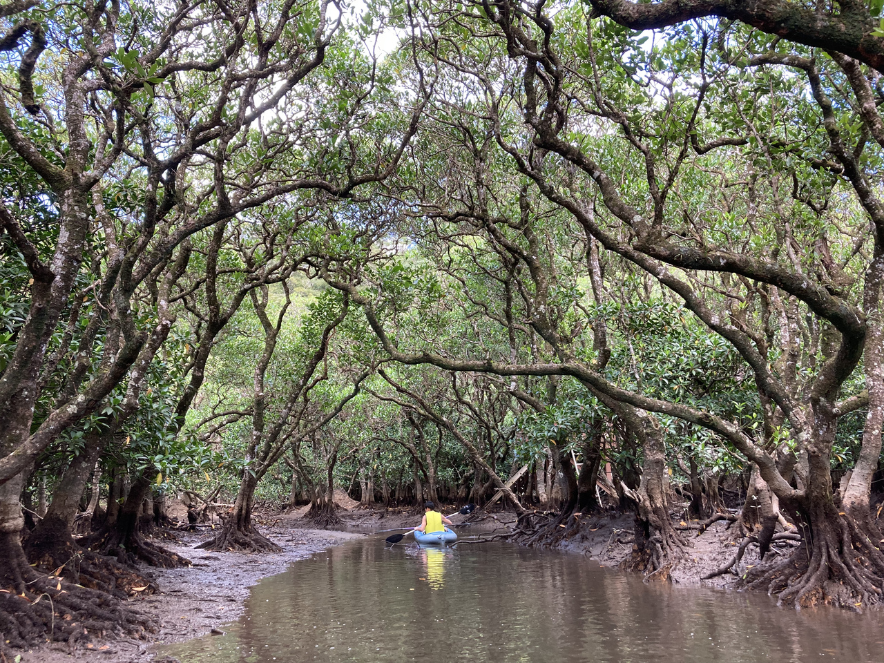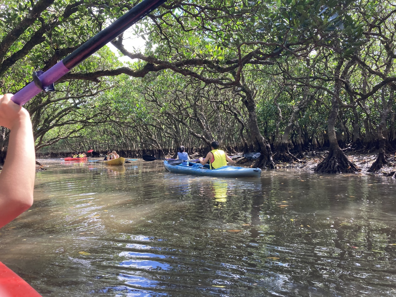 道の駅の方のカヌーツアーは、30人近くで行動するので、我が家には不向き。個人でゆったり自由に散策したい人には、マングローブ茶屋がオススメです。