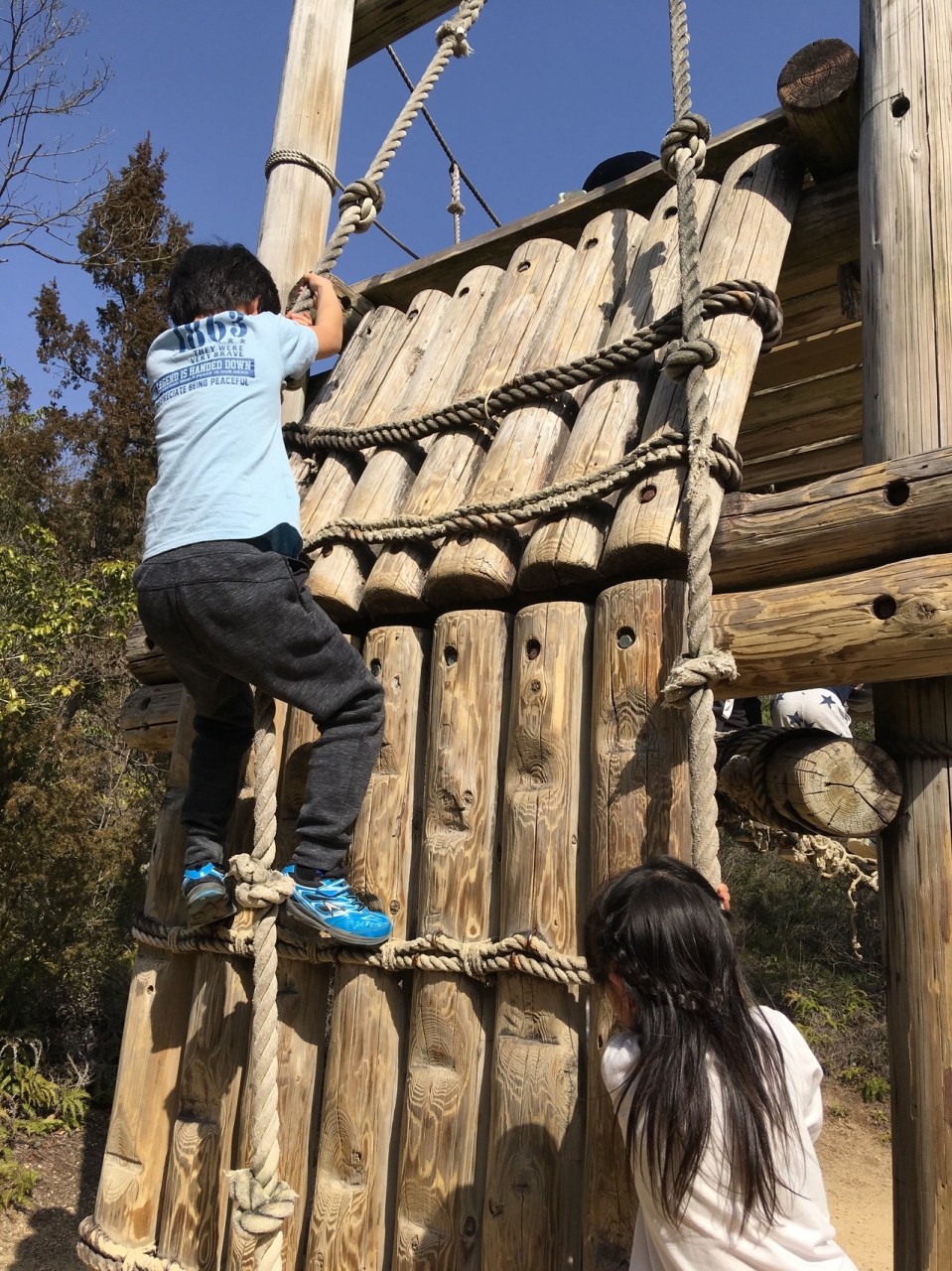 とても本格的なアスレチックで森の中に作られているのも、とても気に入りました。