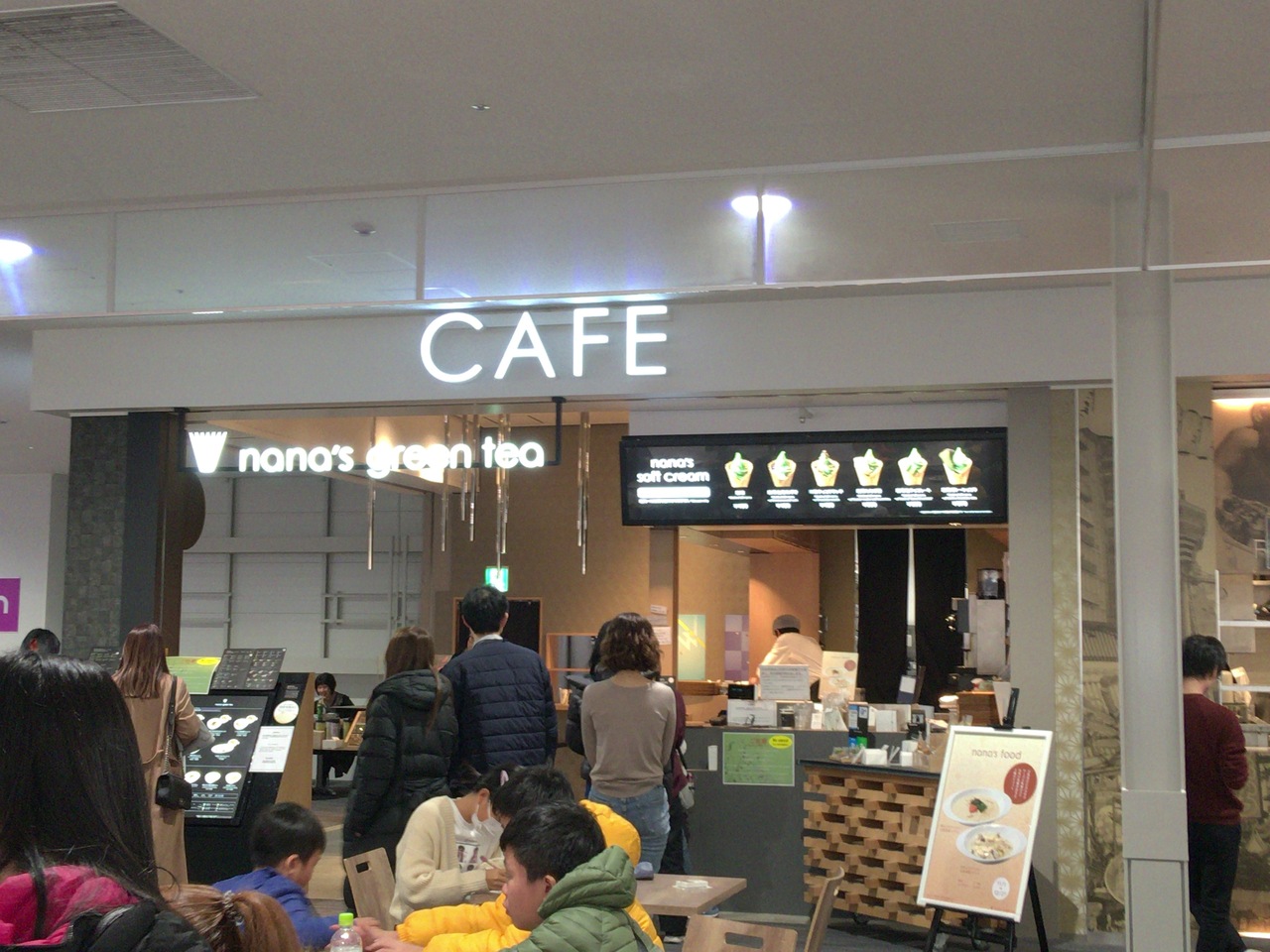 関西国際空港の第2ターミナル、搭乗口手前にあるナナズグリーンティー。飛行機に乗る前に、カフェしたり、軽食を食べたりできるので便利だと思いました。