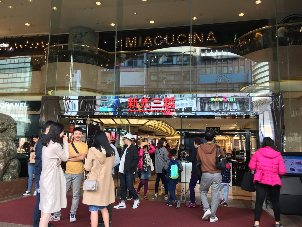 台北の中山駅前にある百貨店です。出口からすぐの場所にあるので、分かりやすいかと思います。新光三越1号館は、隣接する誠品生活南西店や新光三越3号館に比べて、高級なお店が多かったように思います。