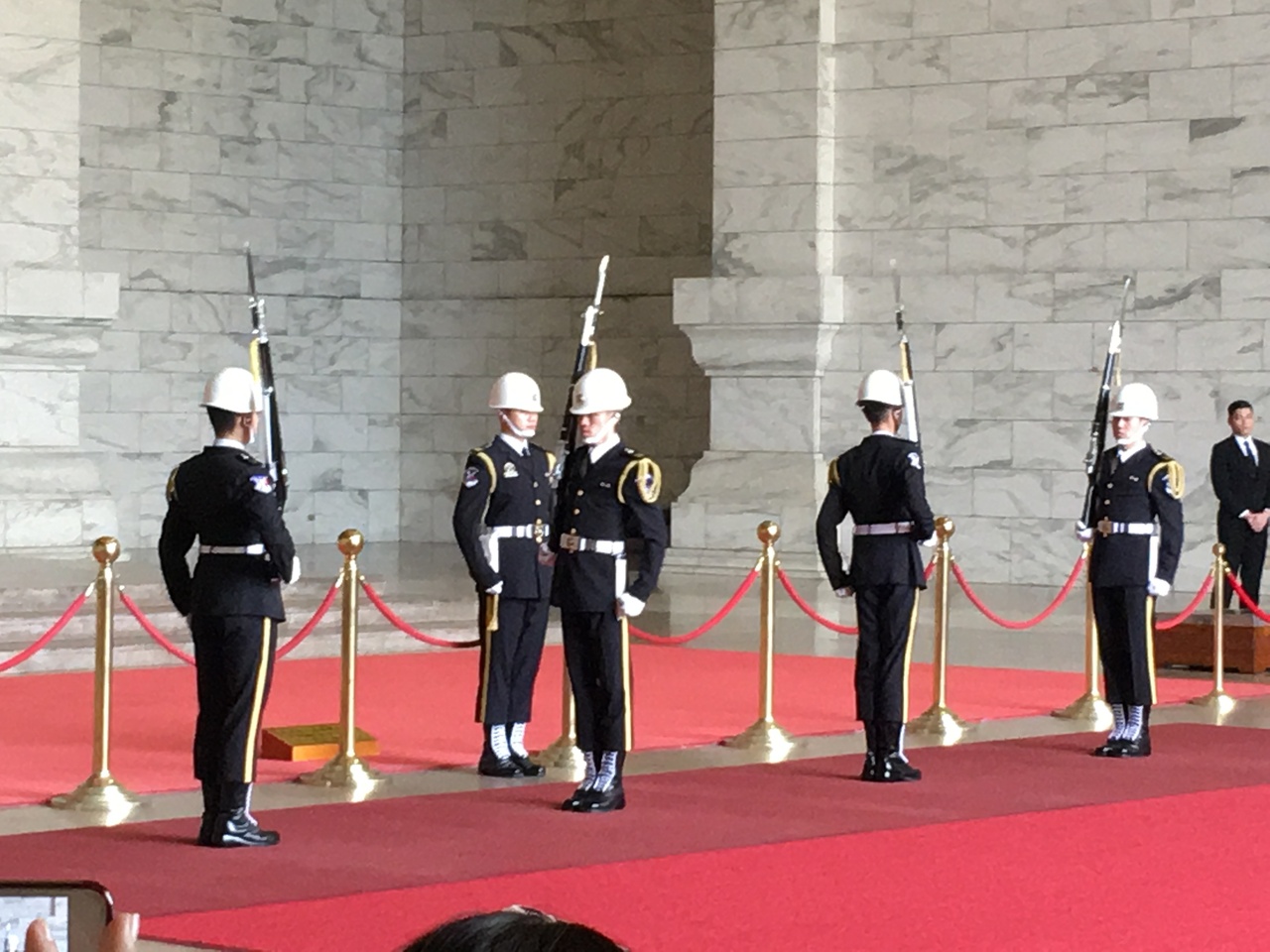台北の中正紀念堂で行われる衛兵の交代儀式。1時間ごとに行われるのですが、まだ15分時間があるし~と思って、ミュージアムを見ていたら出遅れました。汗