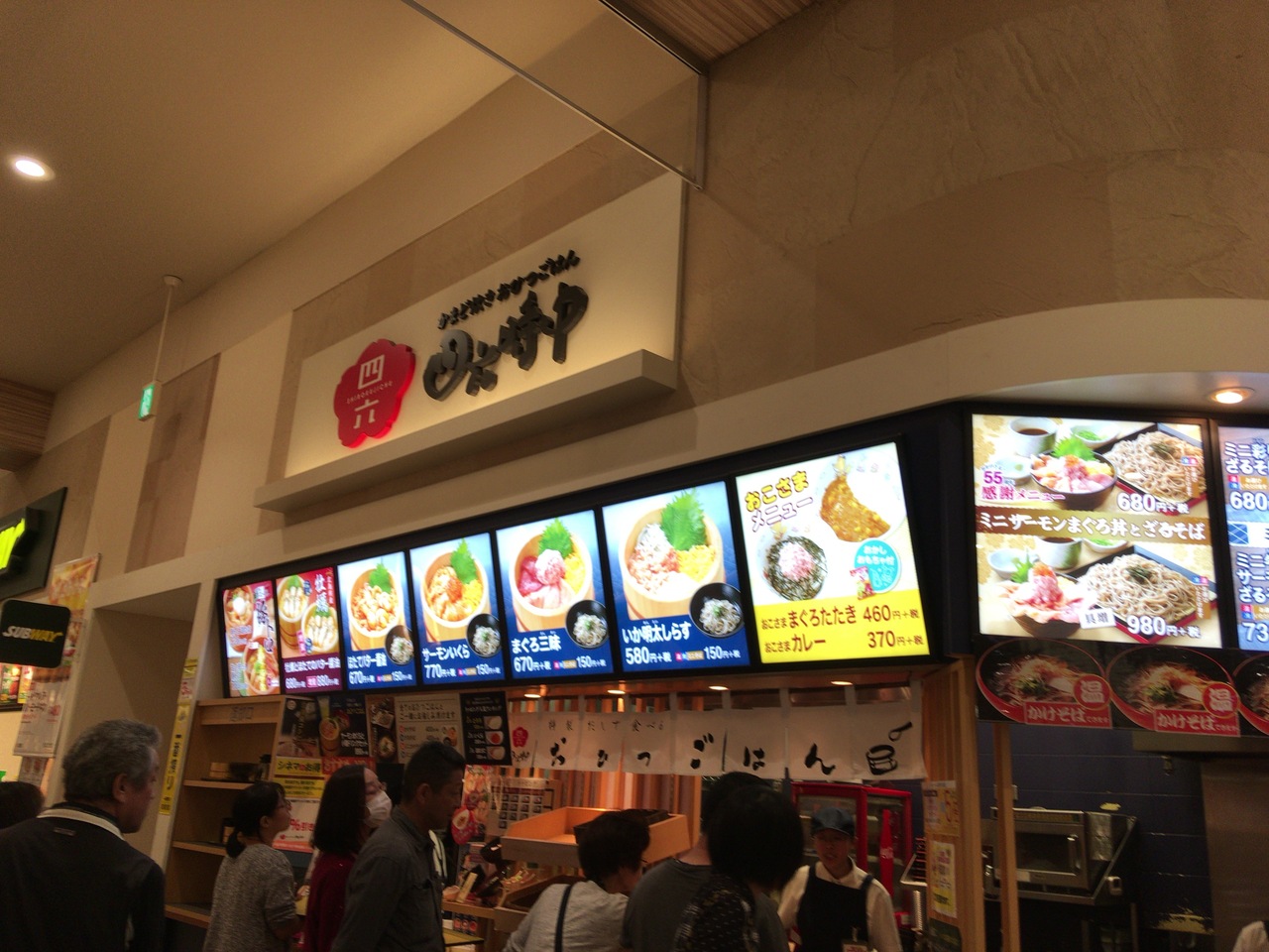 滋賀県の名神高速道路上にある多賀サービスエリア。その中にフードコートがあります。サービスエリアにしては、メニューも豊富で選びがいがありました。