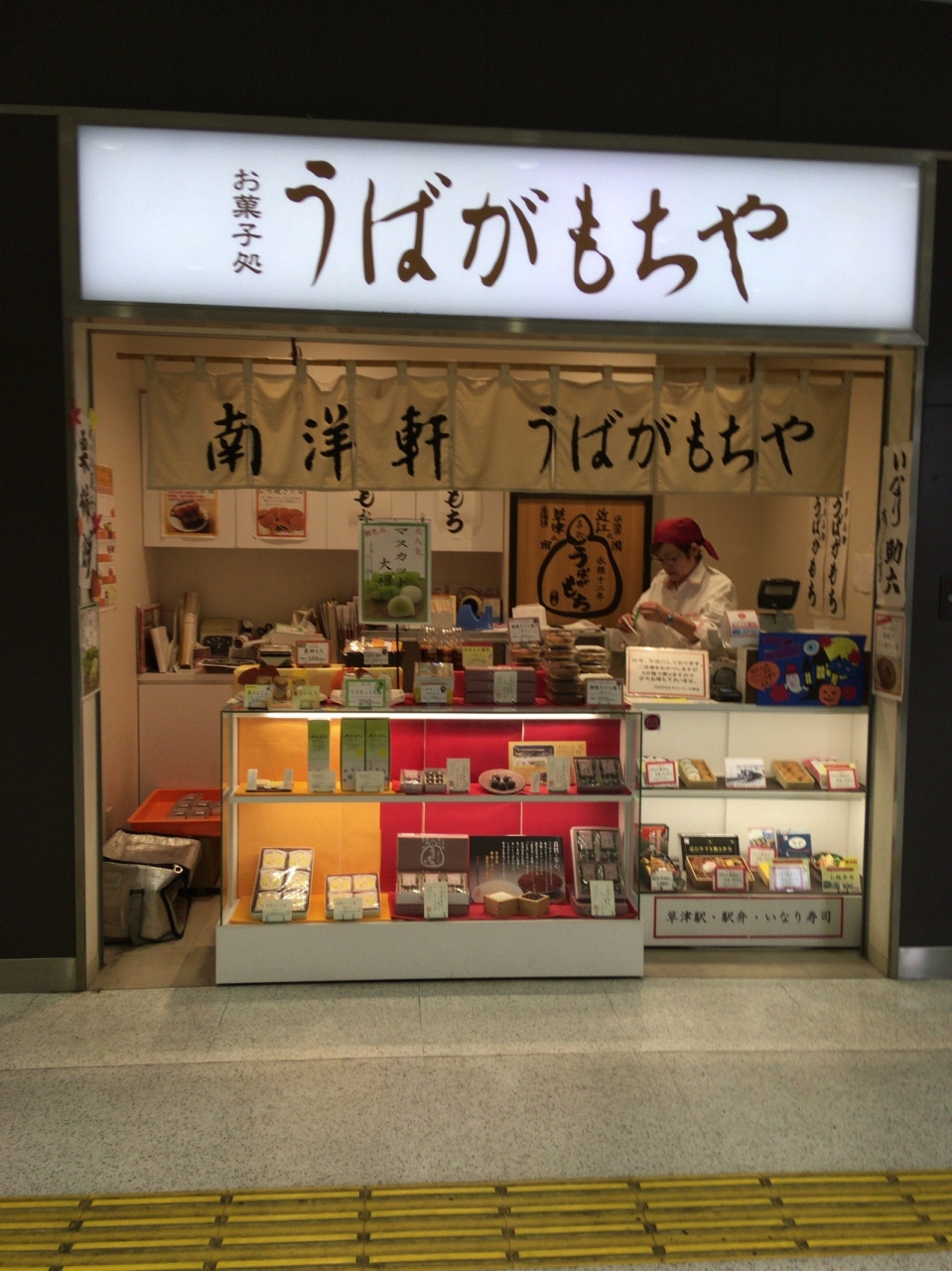 滋賀県草津市にあるJR草津駅にあるうばがもちや。改札の真ん前にあるので、手土産を買いたい時や、ちょっと小腹が空いた時などに買えるので使い勝手がいいお店です。