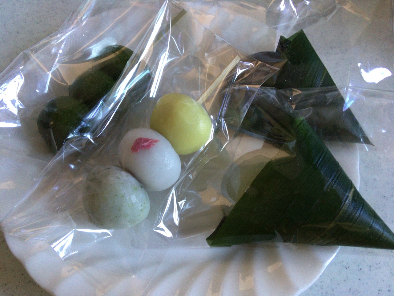 話題の黒糖わらび餅、変わった3色だんごなどを買いました。