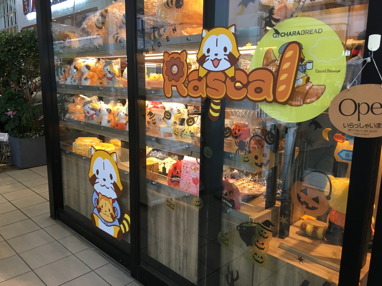 大阪エキスポシティにあるキャラクターのパン屋さんです。以前は、ジャッキーとコラボしていましたが、今はラスカルとコラボしていました。