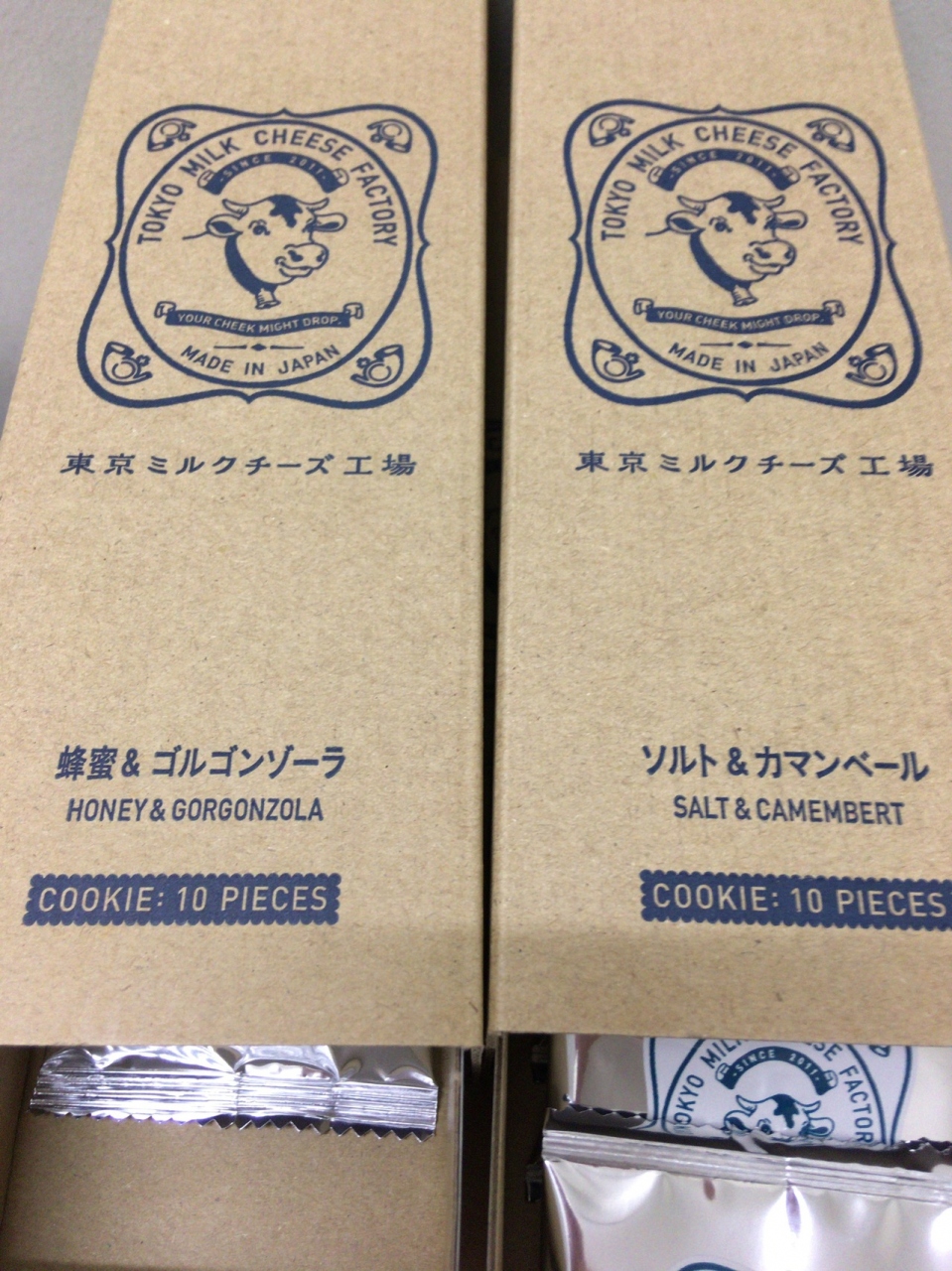 東京ミルクチーズ工場さんのチーズクリームがサンドされたクッキーを頂きました。ソルト&カマンベールクッキーと蜂蜜&ゴルゴンゾーラクッキーの2種類を食べました。個人的には、蜂蜜&ゴルゴンゾーラクッキーが濃厚で、ほのかに蜂蜜の香りがして美味しかったです。