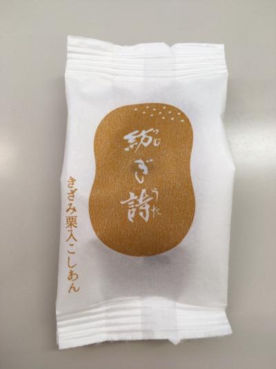 きざみ栗入りこしあんとピスタチオの2種類ありました。形は、ひょうたんのような形だなぁと思っていたら、まゆの形みたいです。