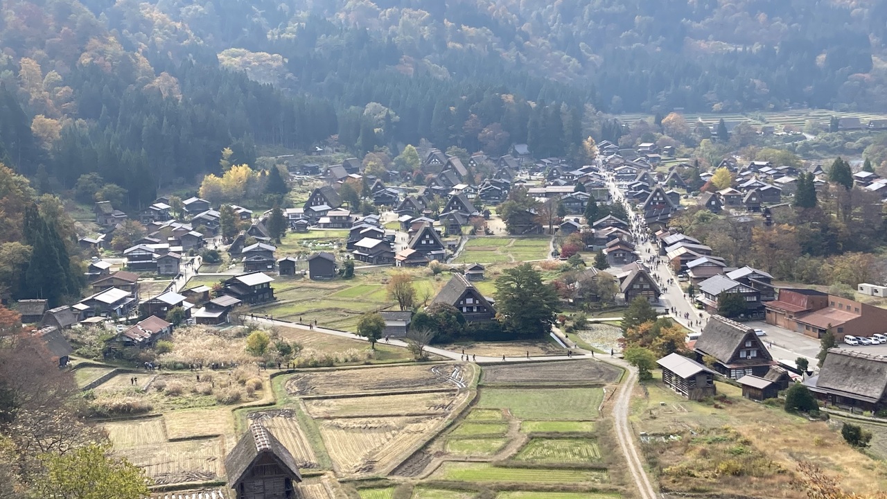 白川郷の展望台に送迎してくれるバスです。国の重要文化財である和田家のすぐ近くにバス停があります。