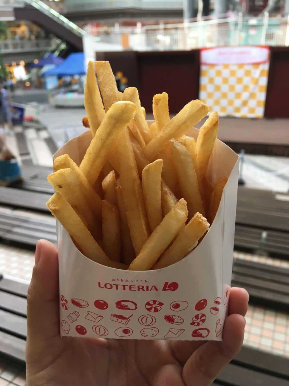 三井アウトレットパーク大阪鶴見にあるロッテリアです。15時の休憩にポテトを買いに行きました。日曜日でしたが、空いていて、すぐに注文。ポテトしか注文していないのですが、全然商品つめてもらえず・・・。ポテトも出来上がって、たくさん並んでいるし、渡してくれればいいのに、店員はウロウロしているだけ。結構店員の人数いたのに。