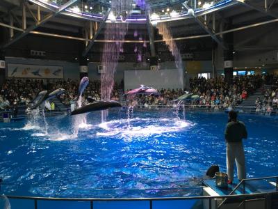 ここの水族館のイルカショーは光と水と音楽を組み合わせてあって、とても綺麗で圧巻でした。前から4列くらいは、イルカに思いっきり水をかけられるので、ポンチョなどを着た方がいいかと思います。かかり方がハンパないので、びっくりしました。