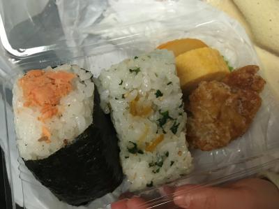 色んな種類のおにぎりが並んでいて、どれも美味しそうでした。からあげと玉子焼きが入ったプチお弁当が売っていて、玉子焼きが食べたかったのでそれを購入しました。