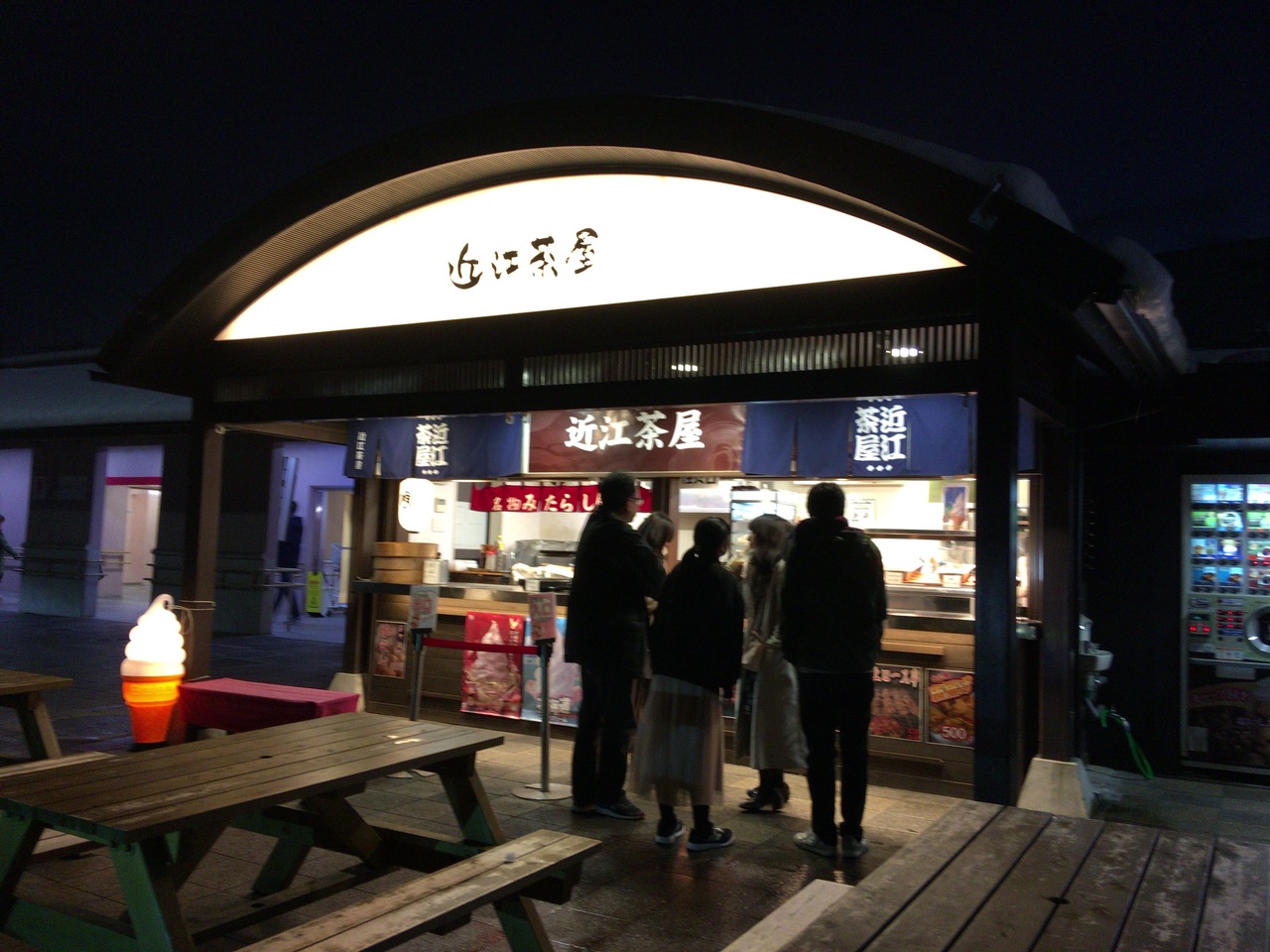 滋賀県の名神高速道路、上り線の多賀サービスエリアにあるお店です。近江茶屋は店内ではなくて、外にあるお店でした。