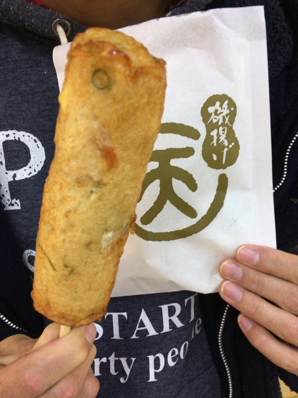 滋賀県草津市の名神高速道路、草津サービスエリアの下り線にあるさつま揚げ屋さん。いつもチーズ棒やたこ棒が温めてあるのですが、今回は、えびマヨネーズというさつまあげを購入。
