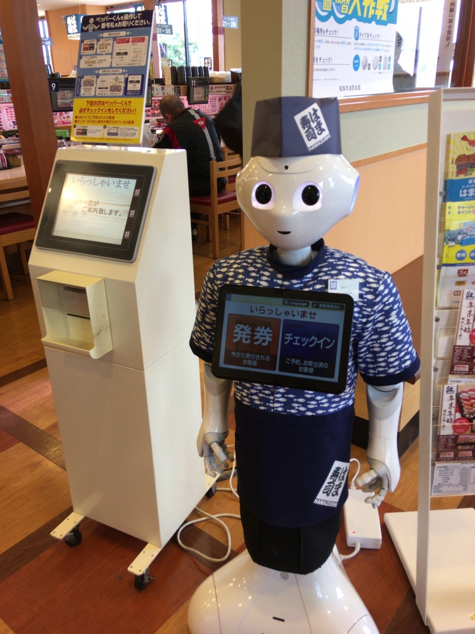 入り口にはペッパーくんがいて、人数入れたら、席を決めてくれます。