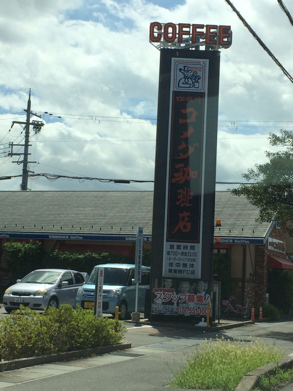 滋賀県栗東市にあるコメダ珈琲店。最近、コメダコーヒーってどこに行っても店舗があって、いつでも行けるお店になってきました。