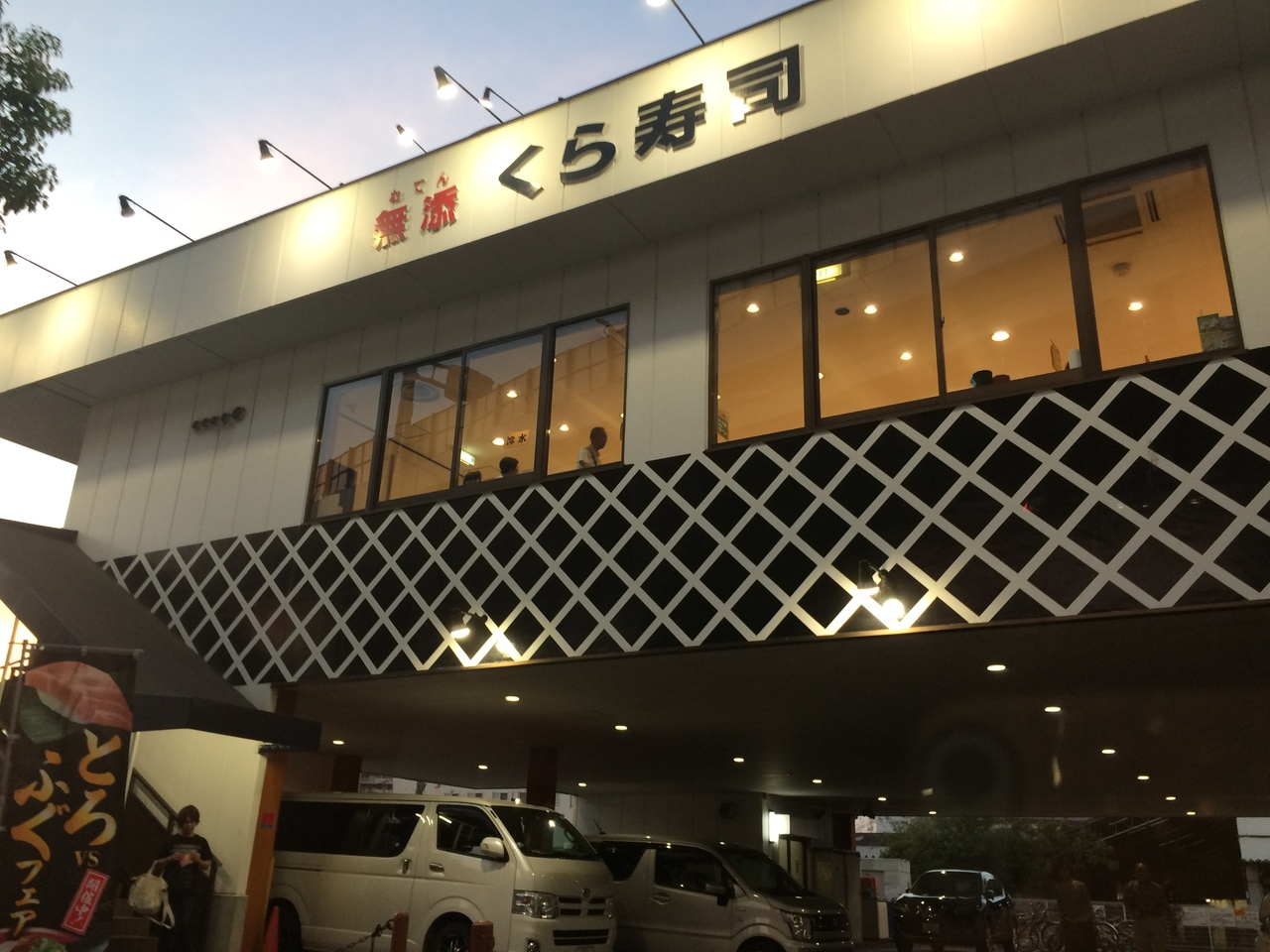 大阪府東大阪市にあるくら寿司。阪神高速道路13号線と並行して走っている国道308号線沿いにありました。1階は駐車場、2階が店舗になっていました。なので、階段を上がらないといけないので、足が不自由な人はりようしずらいかな?と思いました。