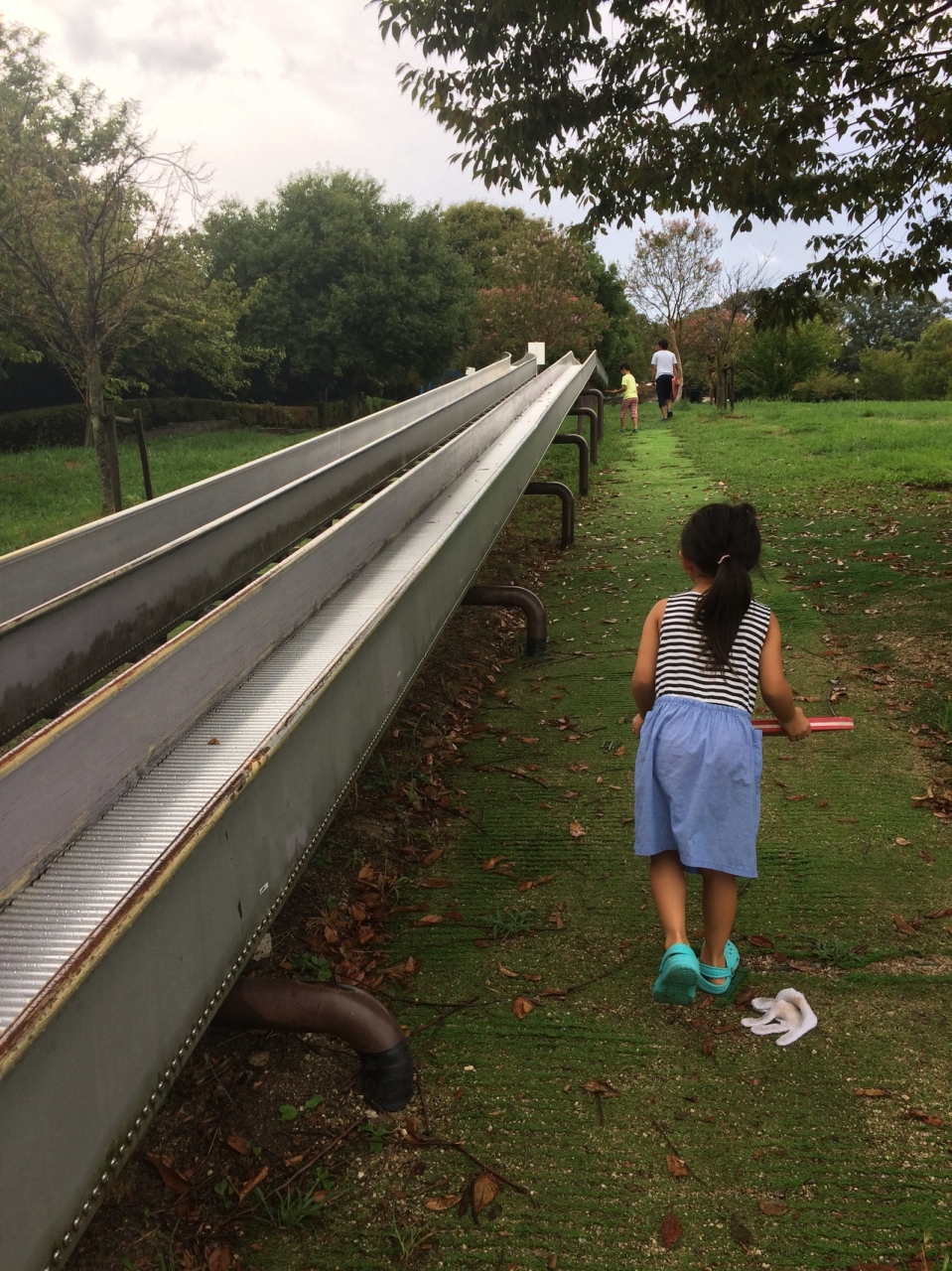 ここで、注意!!大人はスピードが出るのですが、雨の後は、滑り台の端を持ってブレーキをかけようとしてもかかりません!!汗