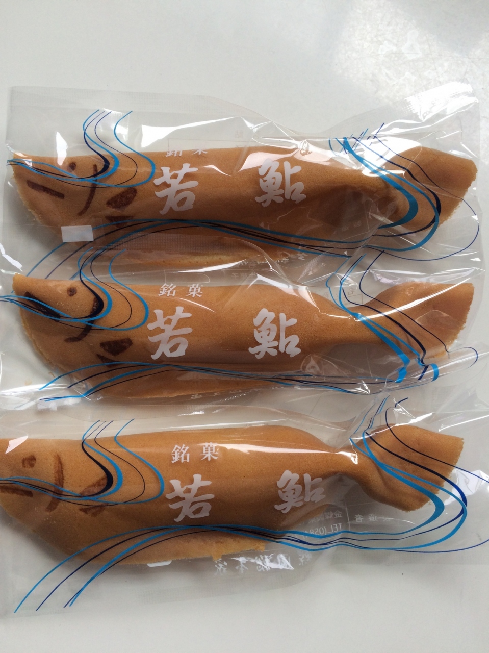 岐阜県大垣市にある老舗の和菓子屋さん。金蝶まんじゅうが有名ですが、今回は若鮎というお餅が入ったカステラに包まれたおまんじゅうを買いました。