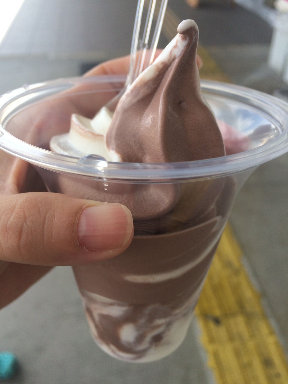 たい焼きやたこ焼き、ソフトクリームが売っていて、ソフトクリームを食べました。ミルクの味が強くて、私は美味しかったです♪- 旅行時期