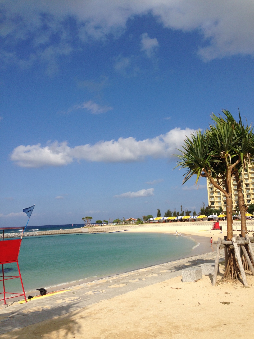 人口のビーチということで、広さ自体はそんなに大きくありませんが、真っ白な砂浜に真っ青な海がとてもきれいなビーチです。