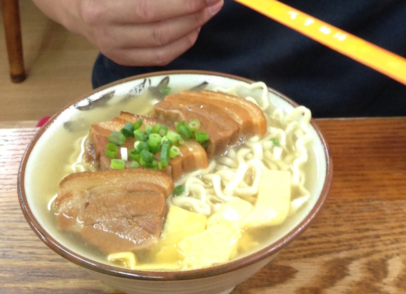 豆腐の沖縄そばが美味しいと聞いたので、私はその沖縄そばを。