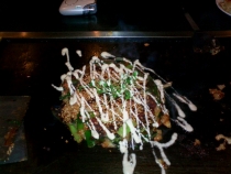 たくさんのメニューがありますが、3人以上であればセットがお得でしょう。私たちは法善寺セット(ミックス焼き、モダン焼き、山芋焼き、ねぎ焼き、やきそば)をチョイスしました。お店の人が作ってくれます。かなりボリュームがあります。飲み物を2杯飲んでも、一人約1,500円くらいです。