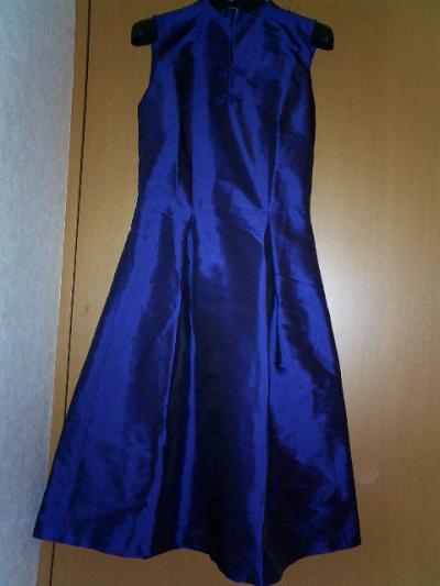 私は、アオザイですと日本で着る機会がないと思い、ワンピースを作りました。サテン地で、どことなくベトナムらしさを出すために、ボタンに工夫をしてみました。10,000円でした。
