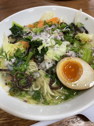 野菜のたっぷり入った塩ラーメンをいただきました。あっさりしていて食べやすかったです。