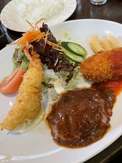 ランチはワンプレートでハンバーグ、コロッケ、エビフライがあり1000円くらいでリーズナブルにのにボリュームもあり、とても美味しかったです。