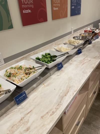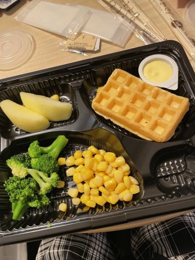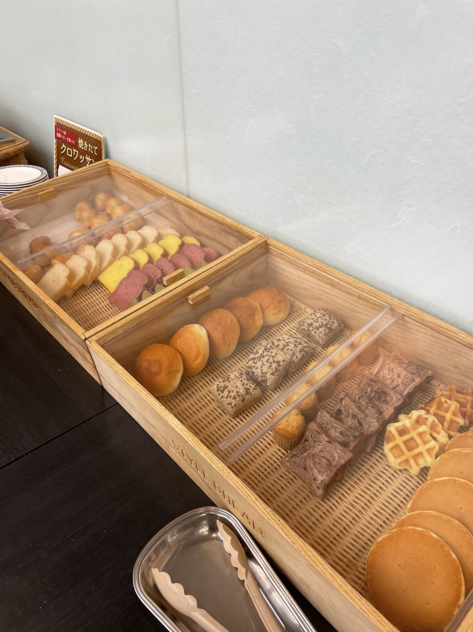 朝食はシンプルですが満足です。部屋に持ち帰れるように容器もありました。飲食スペースは大きくないので、混雑してたら持ち帰る方が早いです。