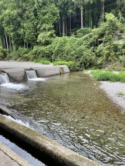 広場から降りると川があり、流れも緩やかで深くないので安心して遊べます。