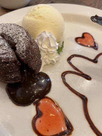 ハンバーグも大きく、肉感もあり美味しいです。肉肉しすぎるわけではないので意外とあっさりして食べやすい。デザートセットにすると、飲み物、サラダ、もついてお腹いっぱいになります。デザートも数種類から選べますが、、私はフォンダンショコラがお気に入りです。