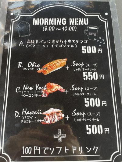 モーニングは4種類の中から選びます。ベーコンのを選んだら、びっくりするくらい小さくて笑えました。