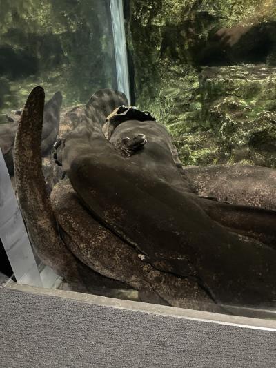 オオサンショウウオがお出迎え、ただし入り口だけなのでみたい人はここで充分堪能してください。屋外スペースに少しアシカとアザラシなどの動物がいて、あとはクラゲと川魚の印象。