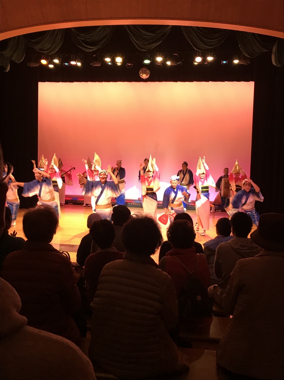 会館の中では阿波踊りを間近で見ることができ、舞台で一緒に踊る体験もできます。