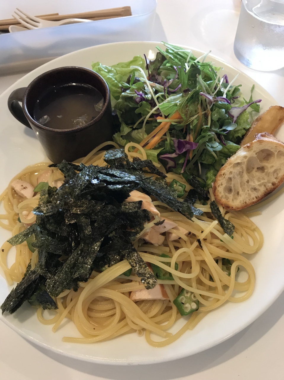 ランチは千円くらいで、パスタ、スープ、サラダ、ドリンクが付いていました。