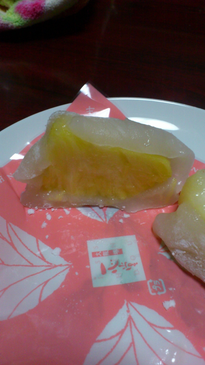 ふわふわのお持ちの中にうすーいあんとフルーツが入っててとてもおいしいです。