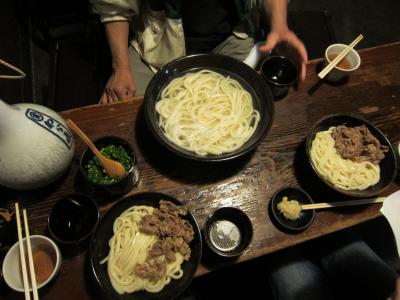 かま揚げうどん、肉うどん、てんぷら盛り合わせを頂きました。