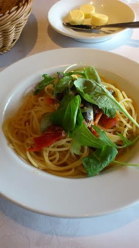 パスタはホタテの入ったジェノベーゼを頂きました。ニンニクが利いててとてもおいしかったです。