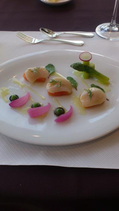 前菜ホタテとサーモンのマリネ・・・すごく美味しい!盛り付けも捨素敵☆
