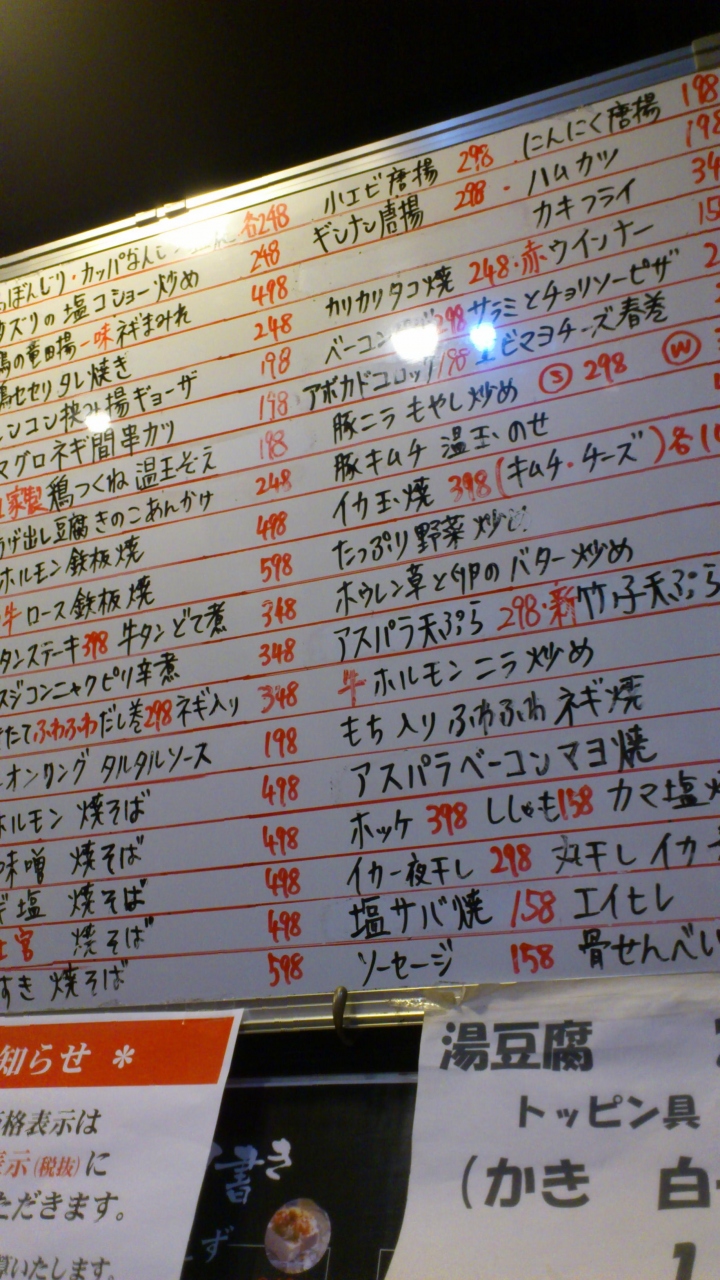 会社帰りの男性が好きそうな居酒屋さんで、メニューもとてもたくさんありました。
