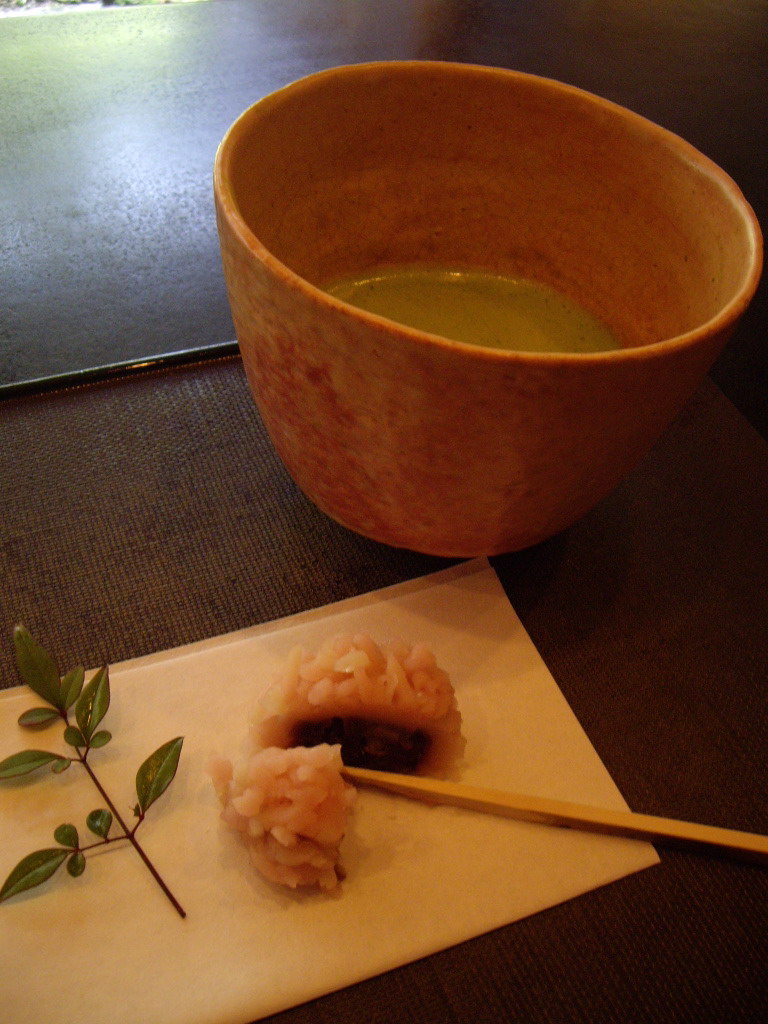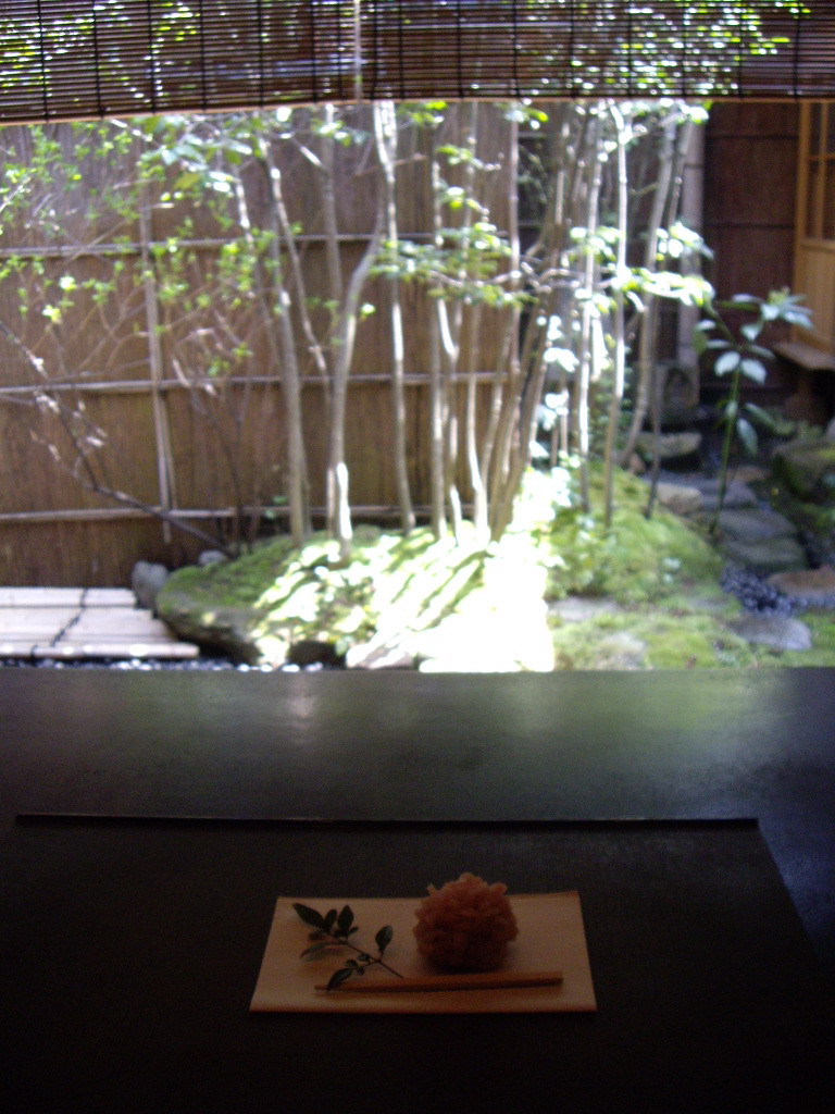 お茶を頂けるスペースはカウンターみたいな1列だけで、小さなお庭を見ながらなので心が落ち着きます。