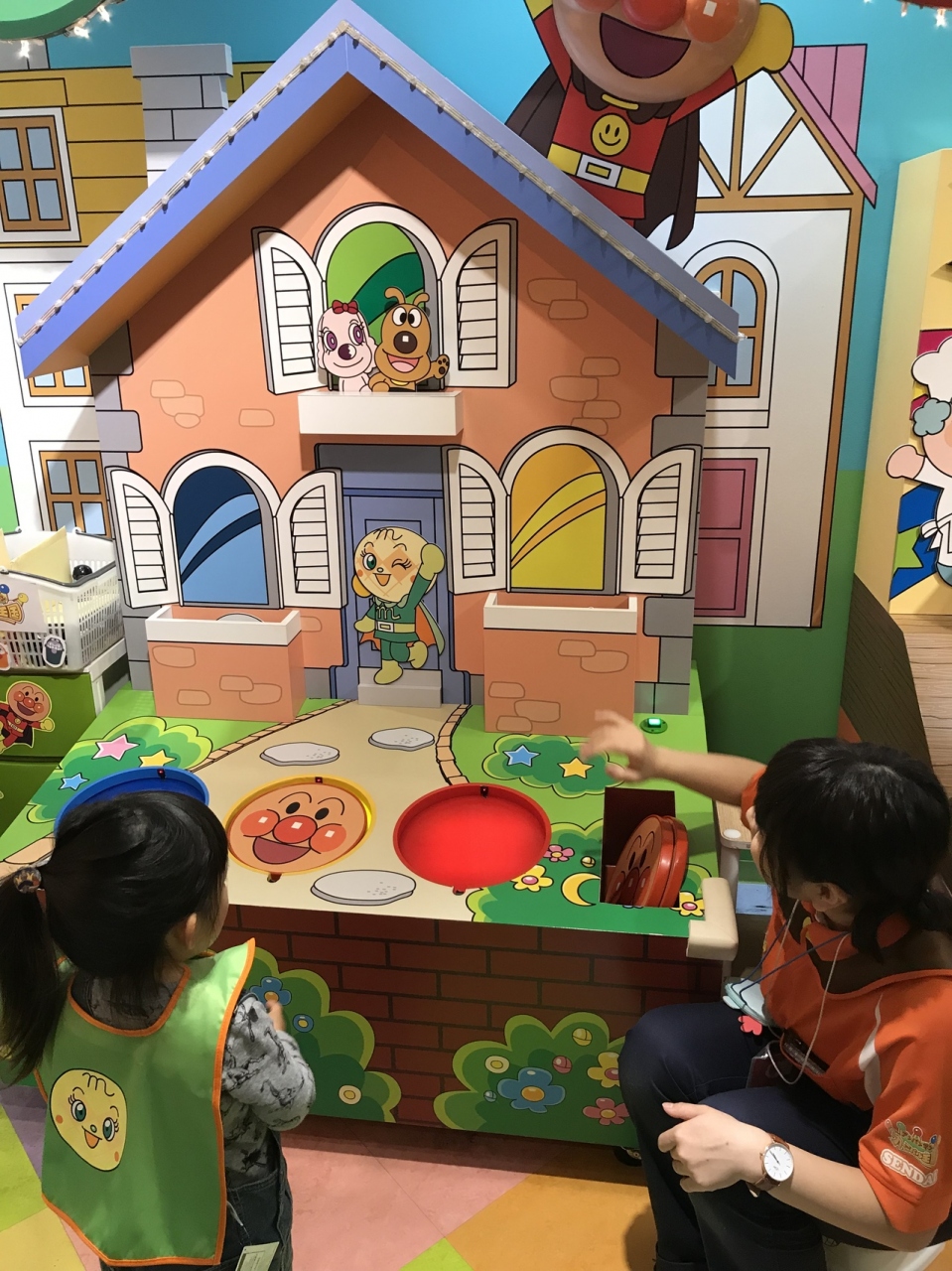 ショーエリアで早めに座っていると、アンパンマンやてんどんまんが遊びに来てくれて写真も撮ることができました。