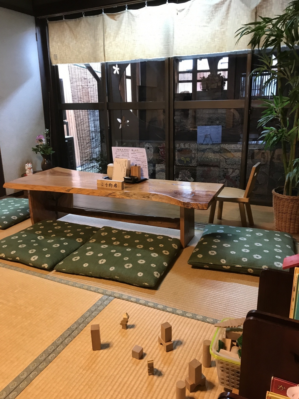 座敷も3テーブルでそんなに広くはないですが、子供用のおもちゃ、絵本がありとても助かります。